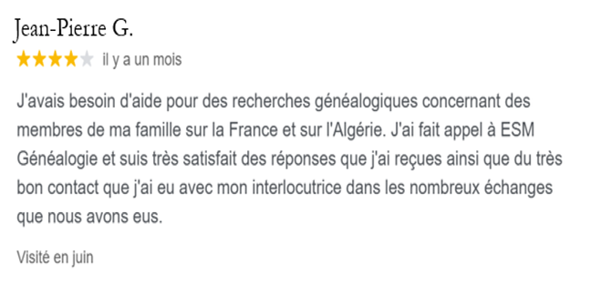 - Recherches généalogiques en France et à l'étranger (généalogie espagnole, foraine ou européens du Maghreb (Tunisie, Maroc, Algérie, etc).